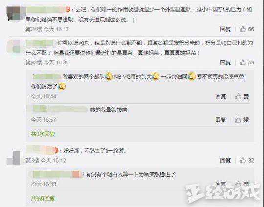 VG战队官博也发微博并配文字“VG确保Ti8直邀,时隔两年之久,重回Ti舞台!温哥华,我们来了!”。不过官微的这条微博下面,众多网友似乎对这几场比赛中VG的表现并不满意,纷纷表示VG去TI8比赛中的胜利可能性不大。