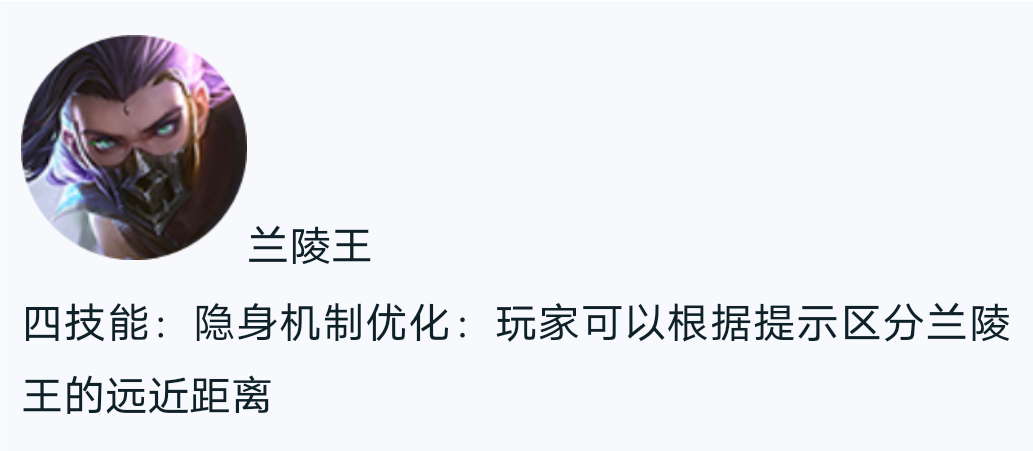 当然,辅助兰陵王的打法,并没有受到太大影响,毕竟辅助兰陵王的优势,是为队伍提供视野,以及配合队友抓人补充伤害,隐身机制的改版,对这两方面的影响并不大。