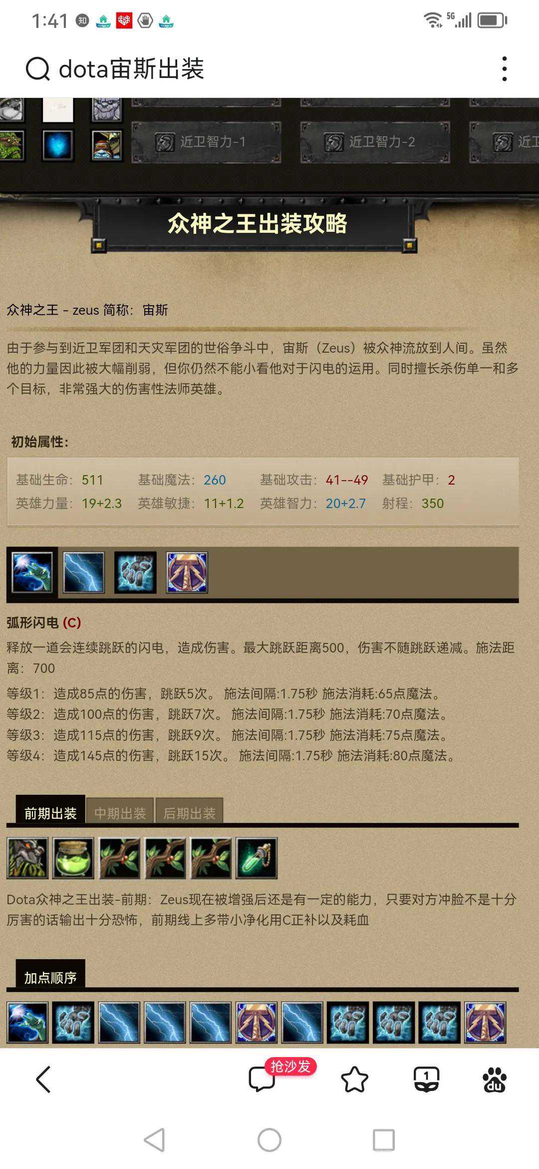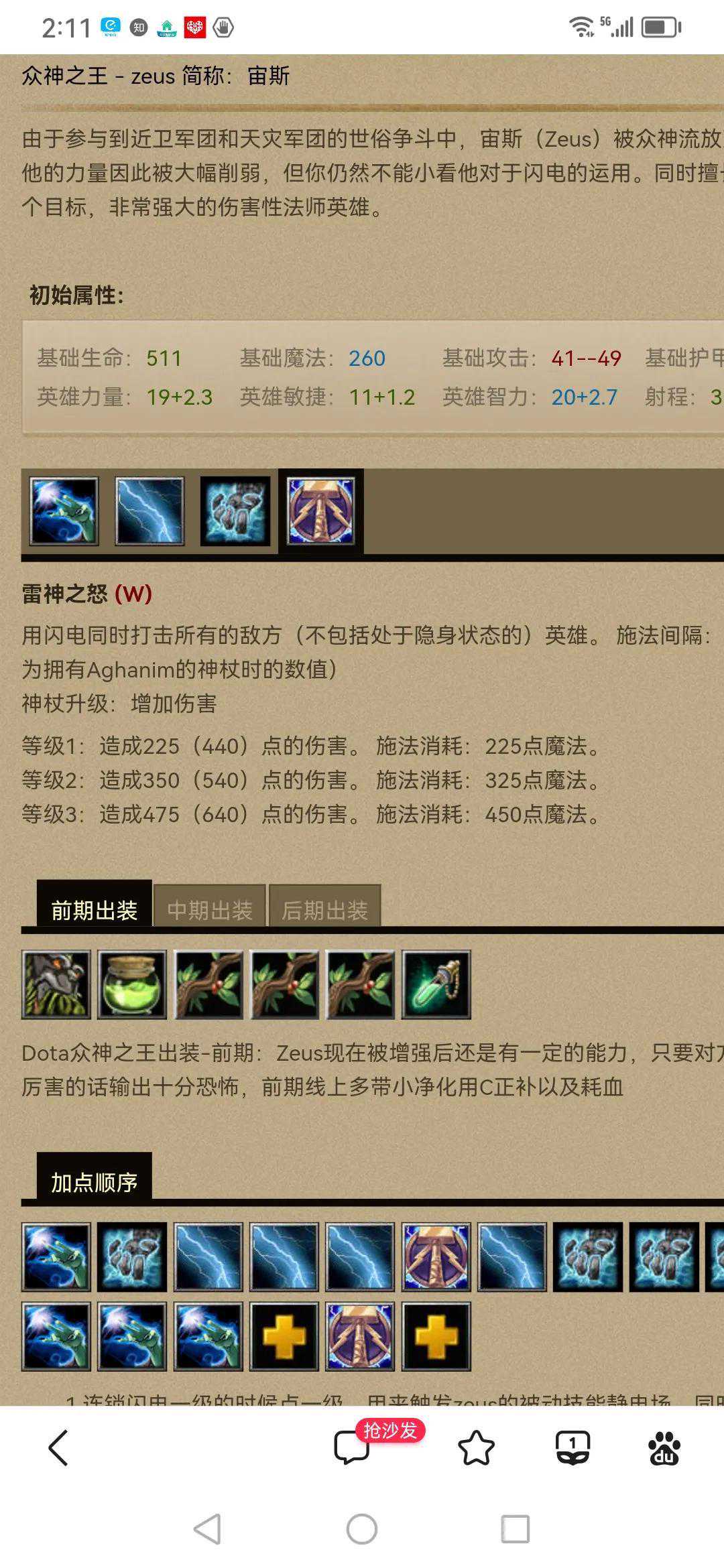 雷击这个技能至少升一级吧,伤害一般。它特别厉害的其实是真视效果(可以在团战中有效对抗隐刺和小鱼,特别是小鱼,非常的恶心,但雷击可以把他打出原型),该技能而且是随意释放的,可以直接对地释放,不需要找到目标,它会自动追击最近英雄目标。