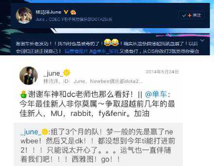 mini幂@林诗洋June我真的要好好说一下,第一次遇到这个选手是在2014年一盘天梯里面排到一边,他用了个小鱼人,同样是高分1带4,跟前几天排到的QO比起来,只能说有过之而无不及。后来发生的事你们以为是我看好他了,错了。我一直以来看好的June是个1号位选手,得打CARRY,别忘了,CIS在2014年Ti的中国区预选成绩最好的时候就是打主C的,后来么,他去打发条了,呵呵呵呵