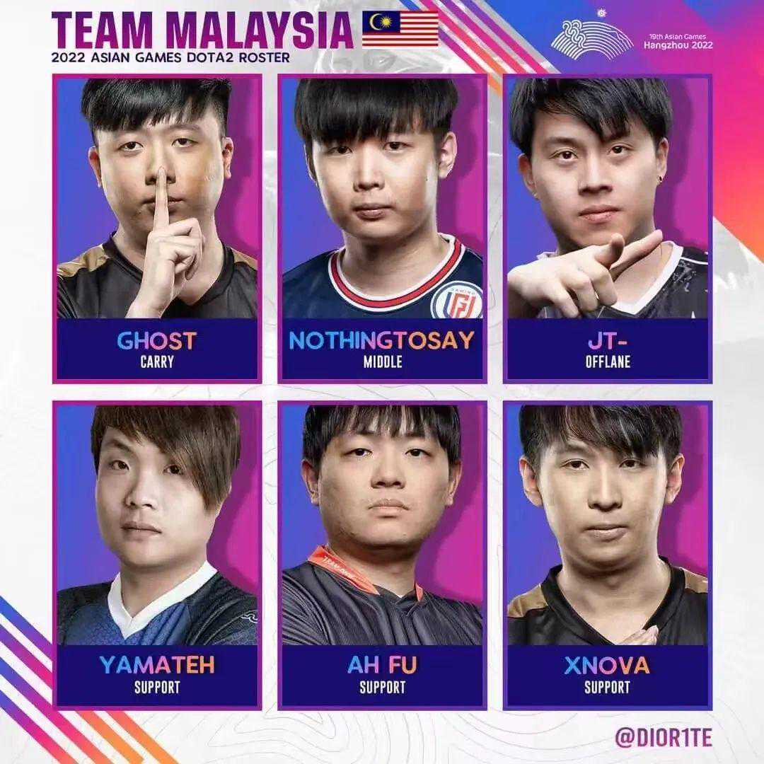 在本次杭州亚运会中,马来西亚队可谓是中国队最大的敌人,其中包括了XG的Ghost、JT,LGDGaming的莫言NothingToSay、SMG战队的ahfu还有BOOM战队的xNova和Mushi:
