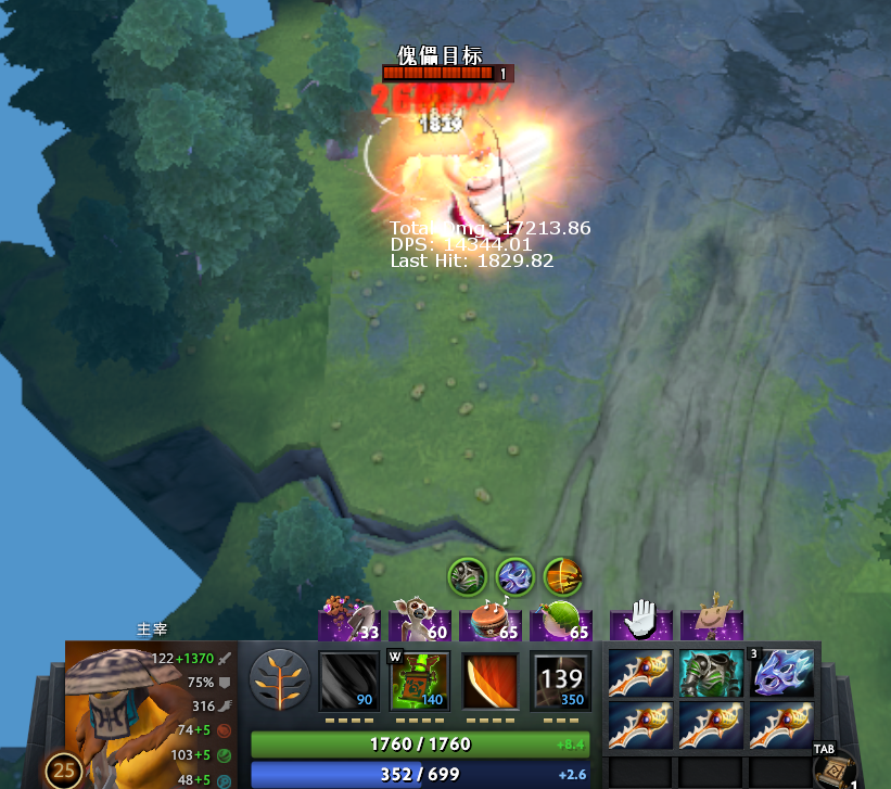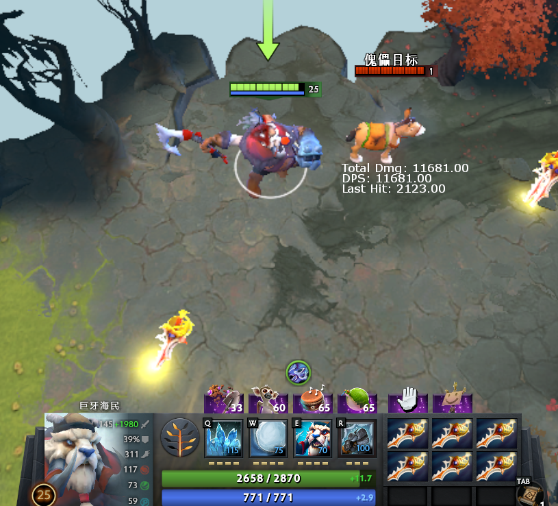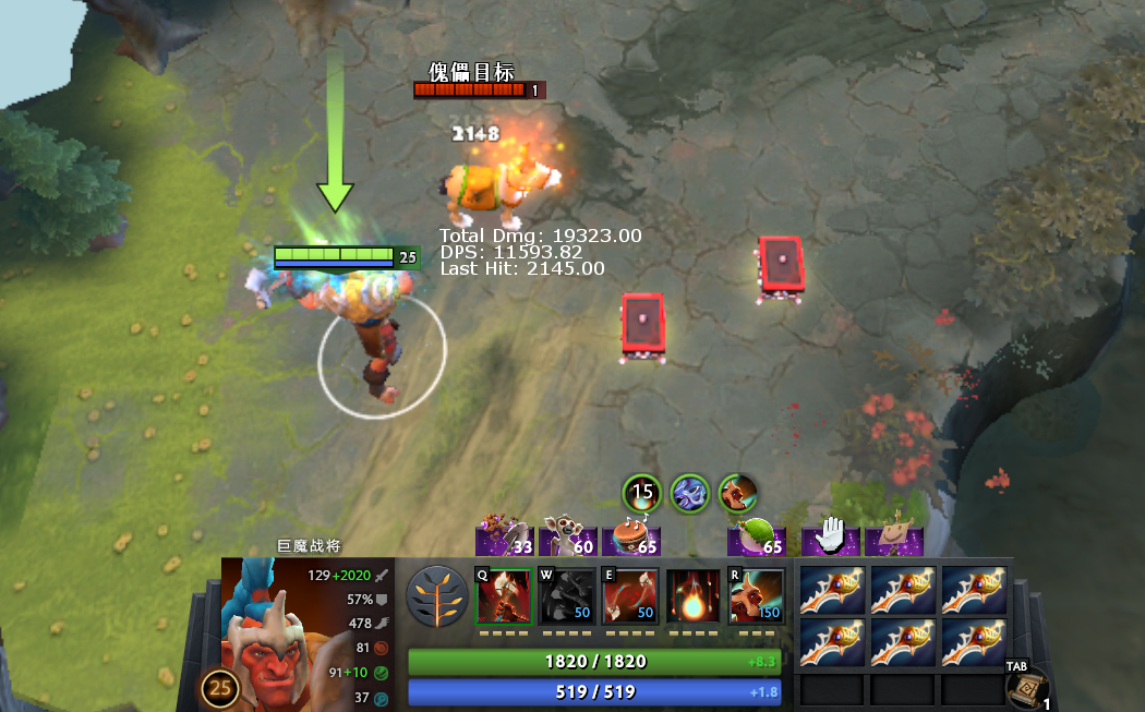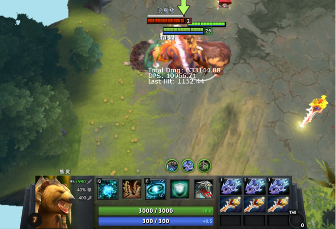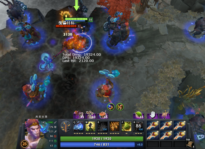 使用装备:6圣剑、1银月,在大招激怒、技能超强力量和技能怒意狂击的加持下达到10809,成为第一个DPS破万的英雄!