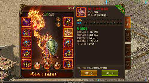 基础属性:物理防御480-800;魔法防御355-655;物理攻击50-90;魔法攻击140-350;内功值2066