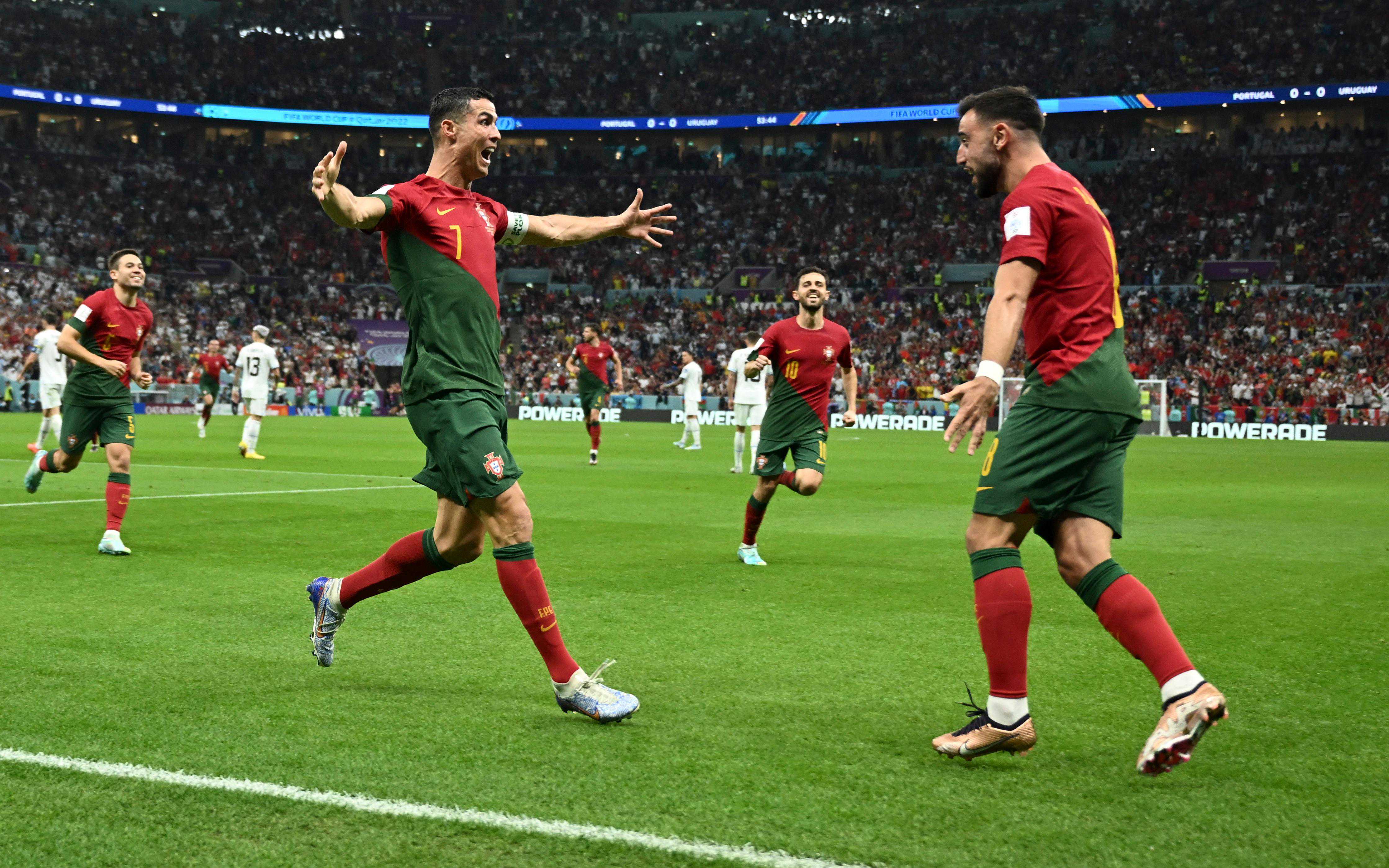 比分在第93分钟扩大,B费的突破造成乌拉圭球员禁区内手球犯规,他亲自操刀打入点球,将比分锁定为2比0。已经被换下场的C罗在替补席上笑容满面地为队友庆祝。双核在终场哨响后搂着肩膀走在一起,B费也得以再次重申本届世界杯的目标,“无论如何,我们都希望C罗举起大力神杯,都希望葡萄牙赢得世界杯。”