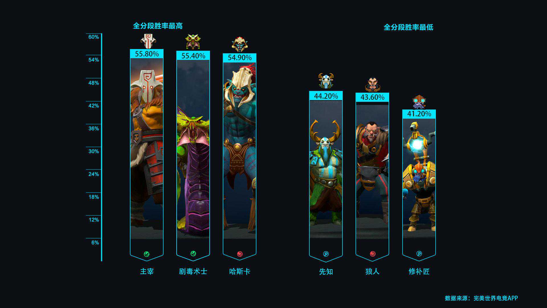 本周全分段的使用率、胜率排行榜如下: