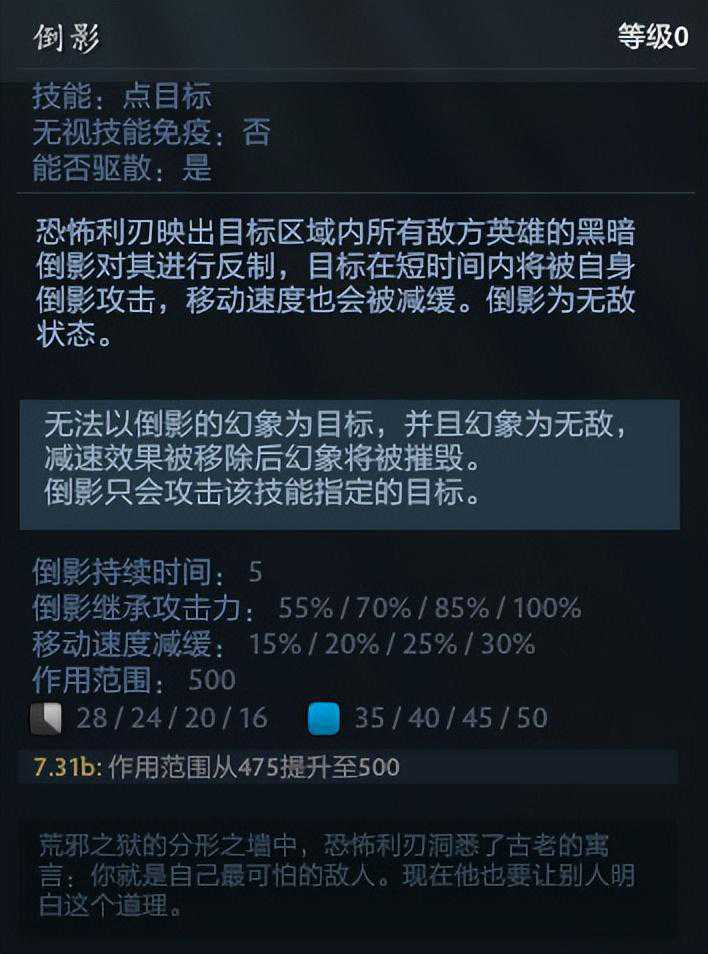 5号位恐怖利刃,这种思路的辅助主要通过前期倒影的强力和TB高护甲高移速来完成对线期的压制,中期通过幻象进行带线“偷钱“打出装备,达成后期的作用。