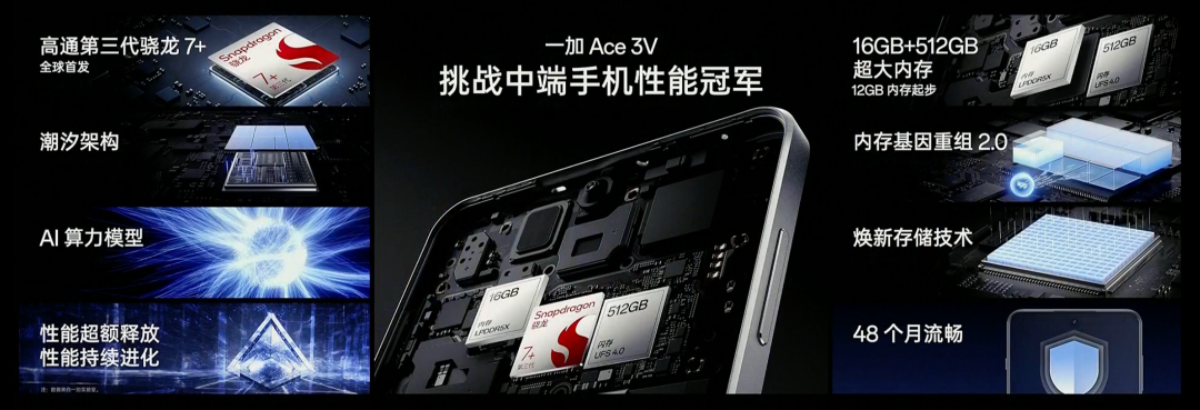一加Ace3V首发骁龙7+Gen3平台,官方将其称为「小8Gen3」。