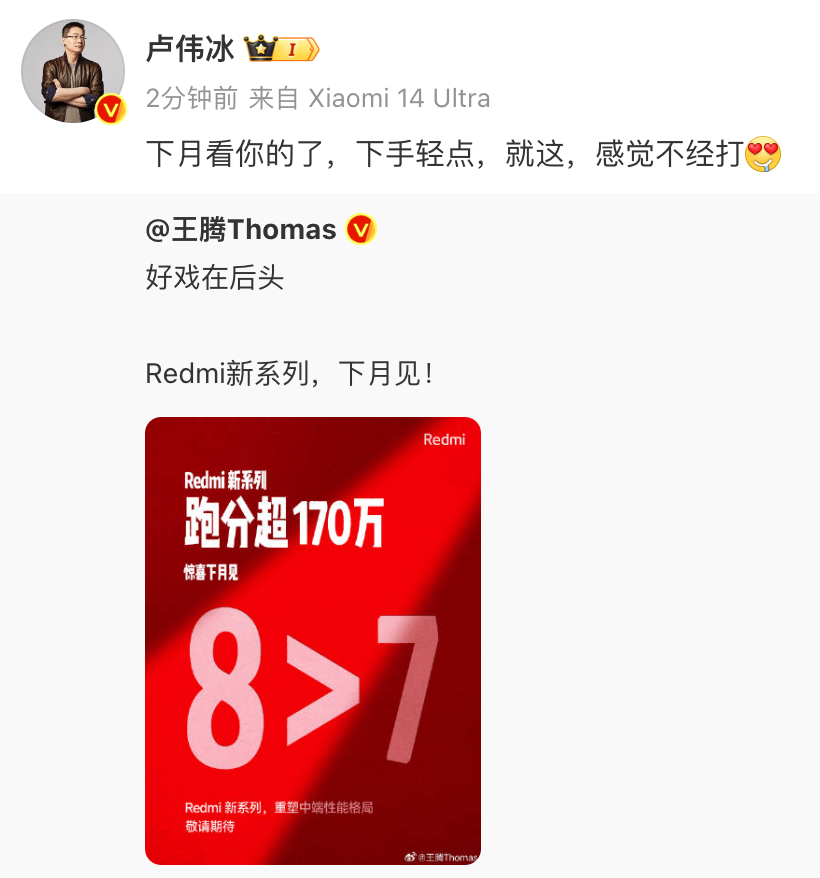 而且卢总的态度也非常直接,就是想给今晚的「一家友商」一些压力。