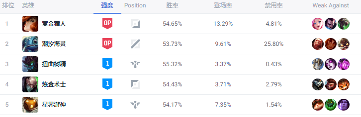 从数据中我们可以看到好运姐的胜率非常之高,仅次于辅助位的大树以及打下路的萨勒芬妮,但是这两个英雄都是属于那种登场率极低的位置选择,需要跟队友配合才能打出很好的效果。