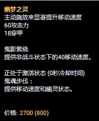 所以幽梦能够在主动开启时为我们提供不错的移速,同时被动也能够在脱战后拥有更快的转线速度,从而能让我们更快的支援队友。