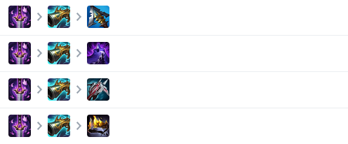 第三件就比较灵活了,如果我们打不动人,就出大穿甲,留不住人就出赛瑞尔达的怨恨,生存空间差就出夜之锋刃,之后再去补足其他装备就好了。