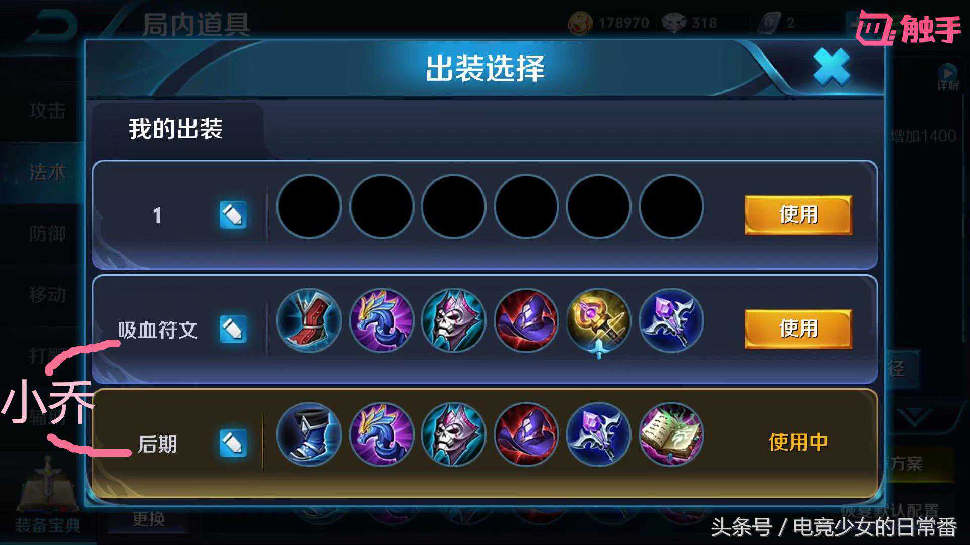4、一个法师英雄在哪吃经济?当然不是野区。有的人玩法师对蓝的需求很高,但其实一个好的法师是对自己蓝量有把握而且主动把前期蓝都让给打野。跟众多法师一样,小乔对蓝不算刚需,也可以通过自己对对面野区的蹲草等榨对面的buff和经济。