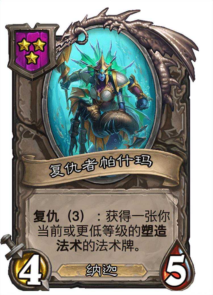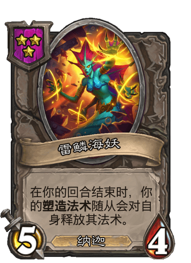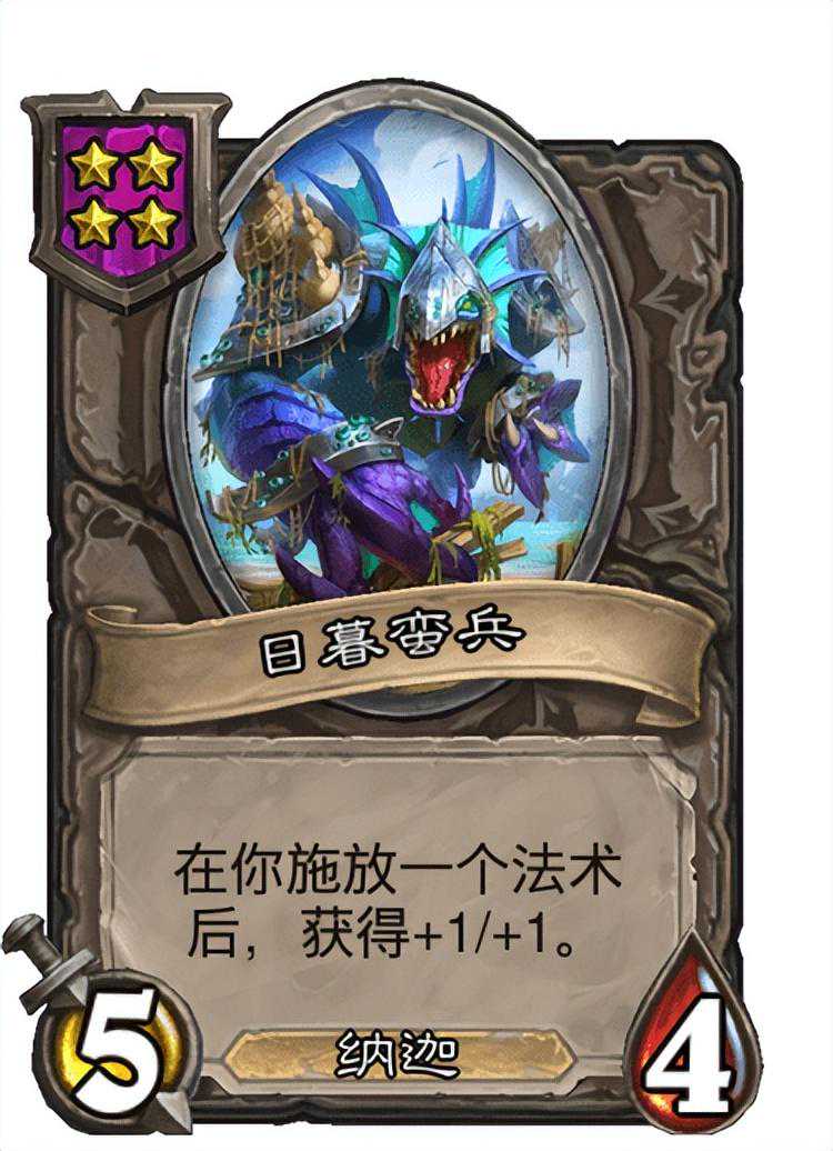 当你的战队总计达到30点攻击力时变身,技能变为发现纳迦牌,非常强力。越早变身,越早开抢纳迦牌。纳迦本身有加攻法术,正常也能8回合变身。如果真的抓不到优质卡纳迦牌,这里就推荐大家前期拿鱼,正常的升本节奏的话,基本上八费也够开了,胡一点八费可以点技能,差一点九费可以点。并且,不仅是战备阶段,战斗阶段也是可以触发被动的,所以各种亡语buff如克苏恩子嗣等等也可以打打工。