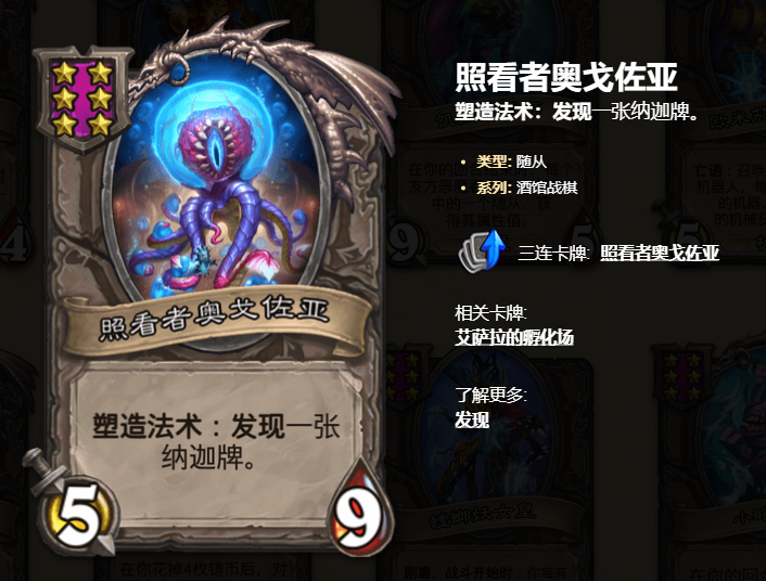 章鱼照看着也是一张非常强力的牌,配合艾萨拉的技能,全酒馆的纳迦牌都要被你发现了。这还怕抢不过别人吗?