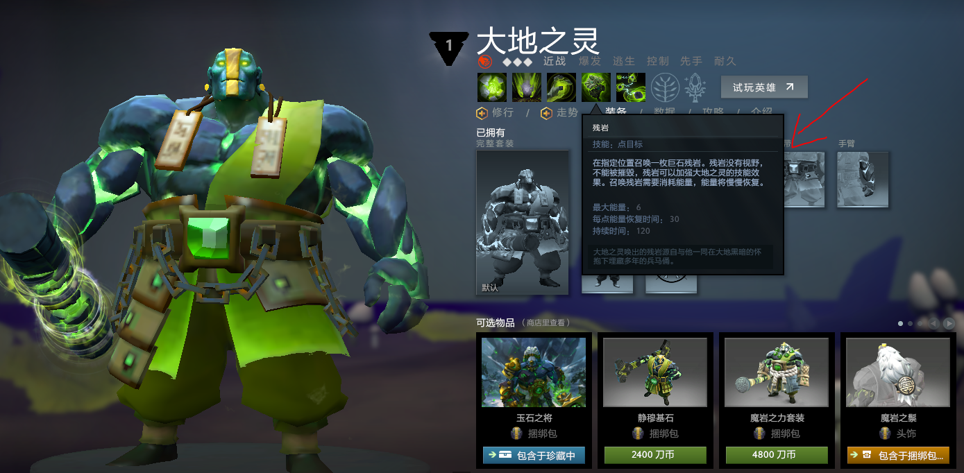 这个技能,可以将一名英雄变成残岩,拥有残岩的属性,对之施法,既可以作用队友,也可以对敌方使用,最经典的大概是TI7上,newbee对阵EG,Kaka土猫将己方被集火的刚被变成残岩,一脚踢出去,刚被逃出生天,恢复过来后,继续战斗,追出高地,将EG团灭。
