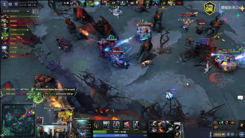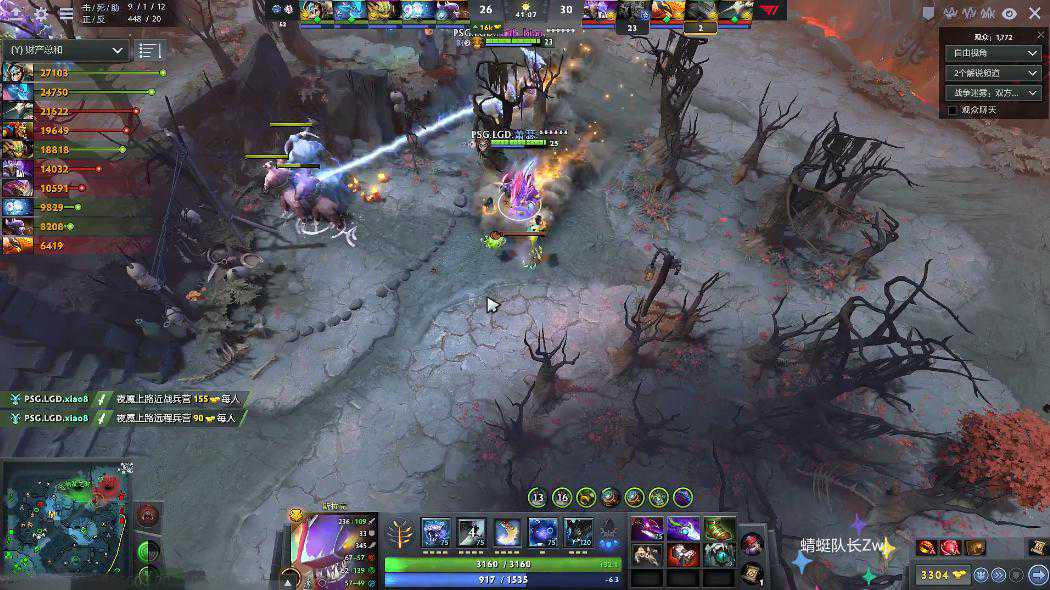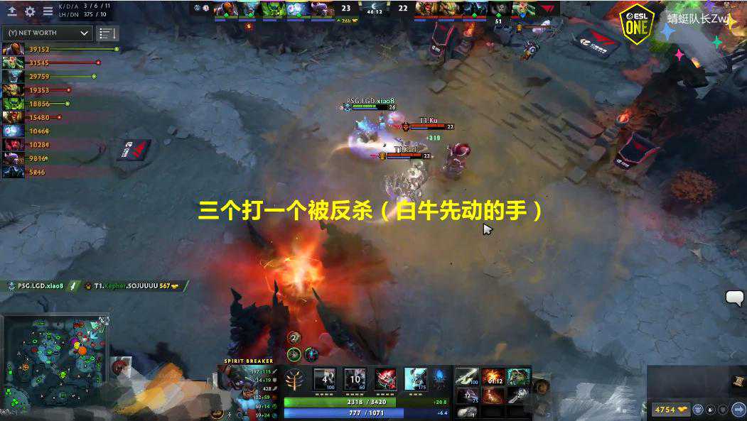 随着敌法师的完全成型,胜利的天平也是开始向着这边开始倾斜了,而为了再破夜宴一路,xiao8的白牛也是毅然决然地冲入了人群(小精灵带敌法师飞下并成功偷掉一路)。