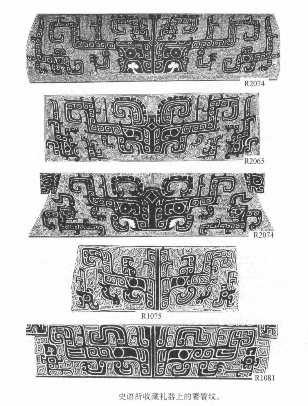 这个双龙头的图案,成为商周时期很多图案、纹样的“母题”。你细看青铜器上的图案,会发现,绝大部分图案都是这种双头龙纹样的演化或者变形。其中一脉相承的关系非常明显。