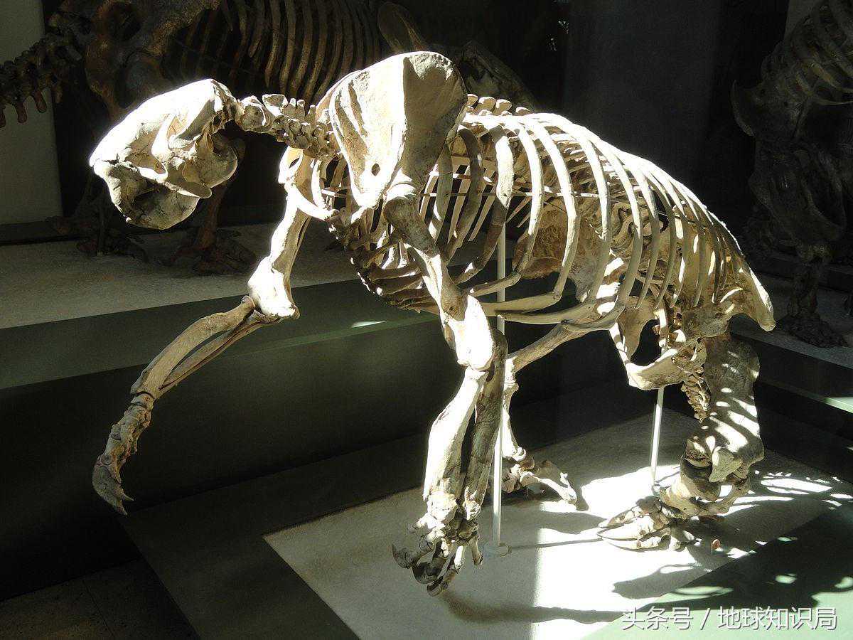 巨爪地懒的复原模型,它是一种强壮温和的动物