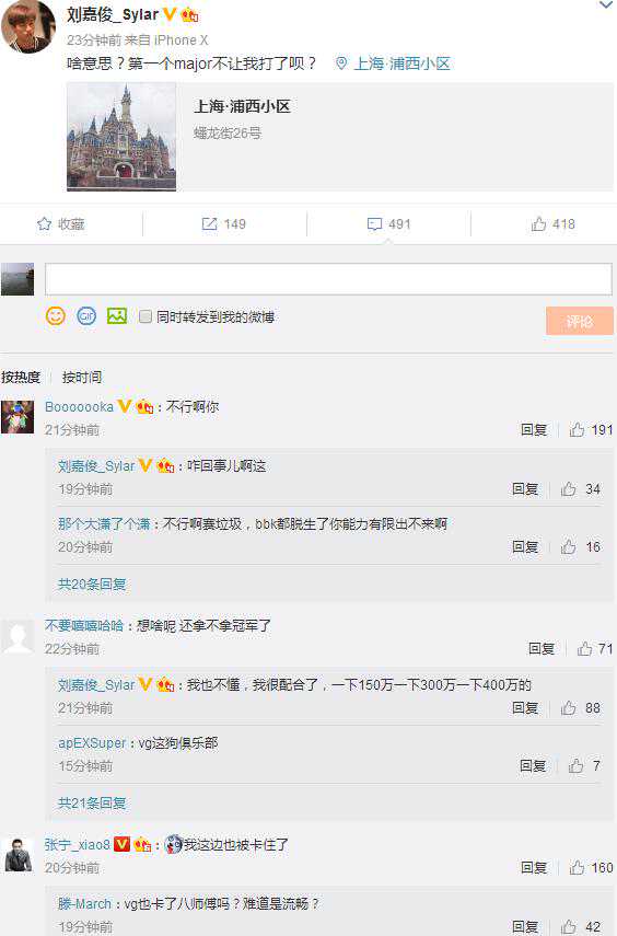 紧接着塞拉也发了一条比较晦涩的微博称“什么意思?第一个Major不让我打了呗”,疑似由于转会问题出现了矛盾。