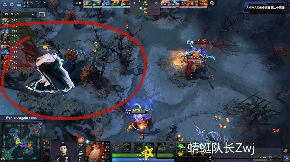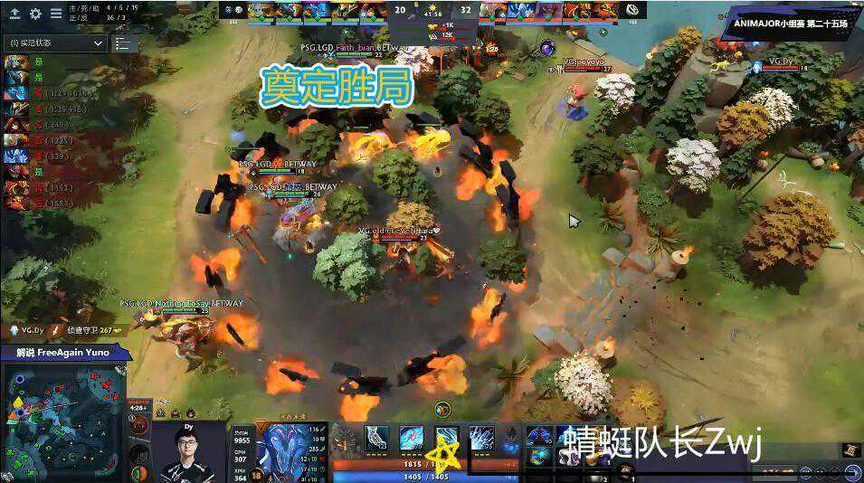 第二局的VG明显是调整好了状态,在对线期与打出了wuwu(五五)开的局面。然而中期的VG由于双核装备尚未成型,无力清理猴子幻想而被打得节节败退,不得不带线牵扯。