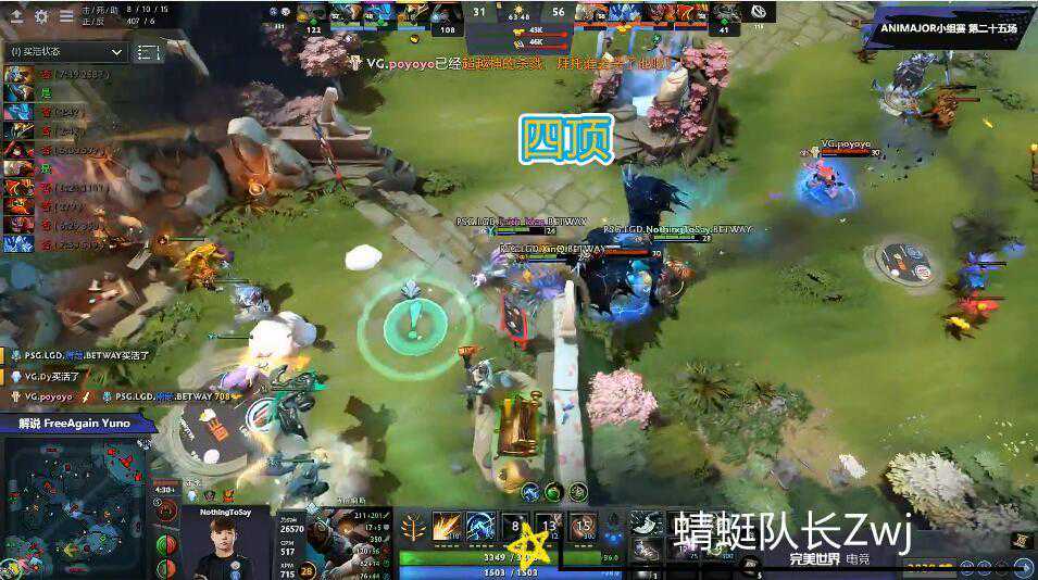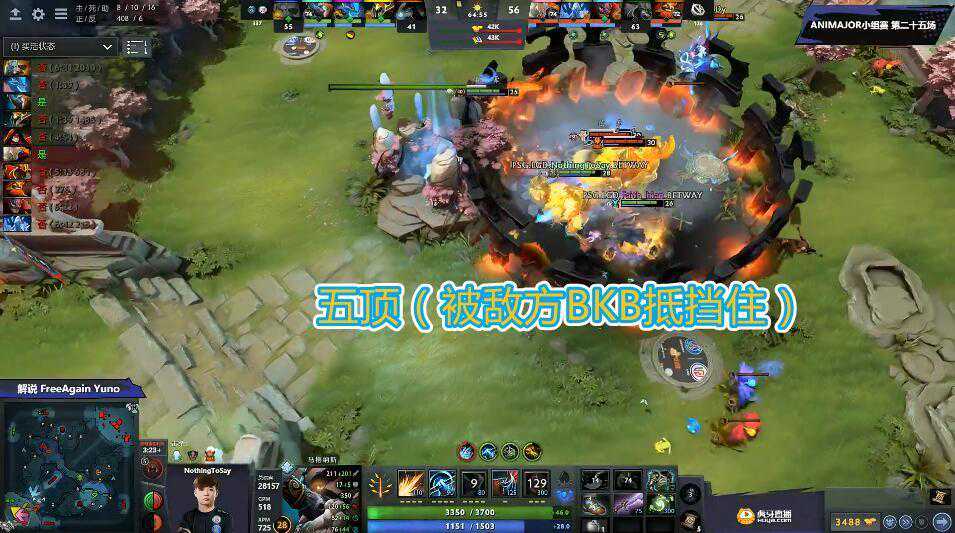 第一部:反破两路的VG试图一波打死,此时莫言的猛犸果断跳大主宰与莱恩并将二人顶至门牙塔。