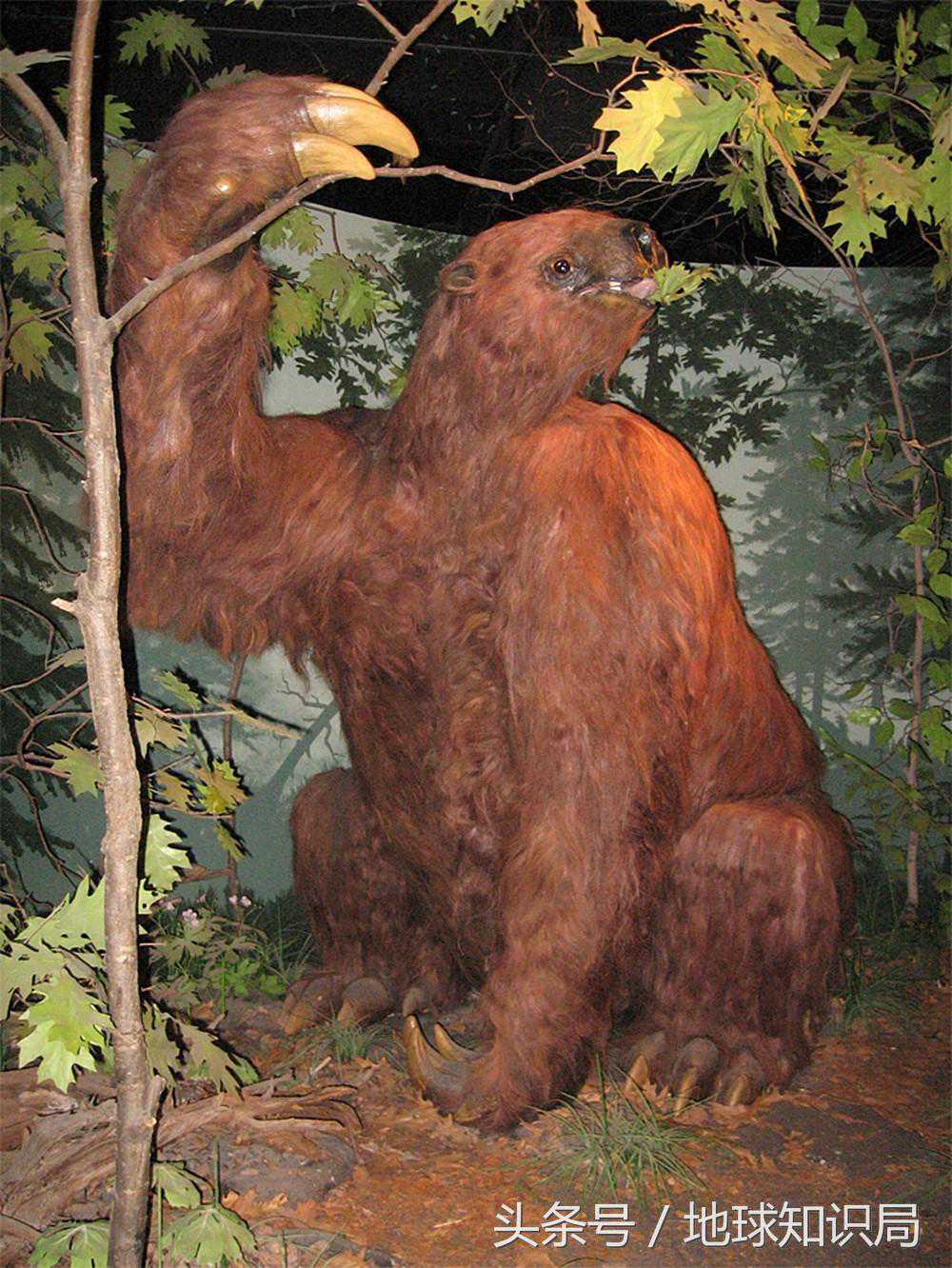 巨爪地懒的复原模型,它是一种强壮温和的动物