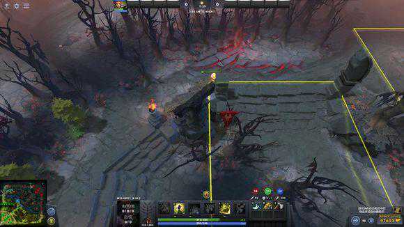 夜魇的这个高台眼也挺蠢的,右边的野区入口被树挡住没视野,肉山入口也有一半没看到,天辉可以顺着边缘溜进去。夜魇:技不如人,甘拜下风。