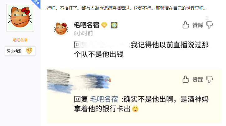 可能是楼主自己倒霉,也可能是09恰好在刷贴吧,看到了这个帖子,就在帖子下面回复"FTD战队是自己全资,之前C队有个朋友出了半年"。
