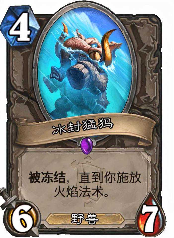 首先,这张4费6攻7血的史诗级卡牌,在身材上就有着超模的优势,而卡牌的关键词特效也是独一无二的,将会是炉石史上首个一直被冻结的随从,直到玩家释放火焰法术之后,才会被解封。