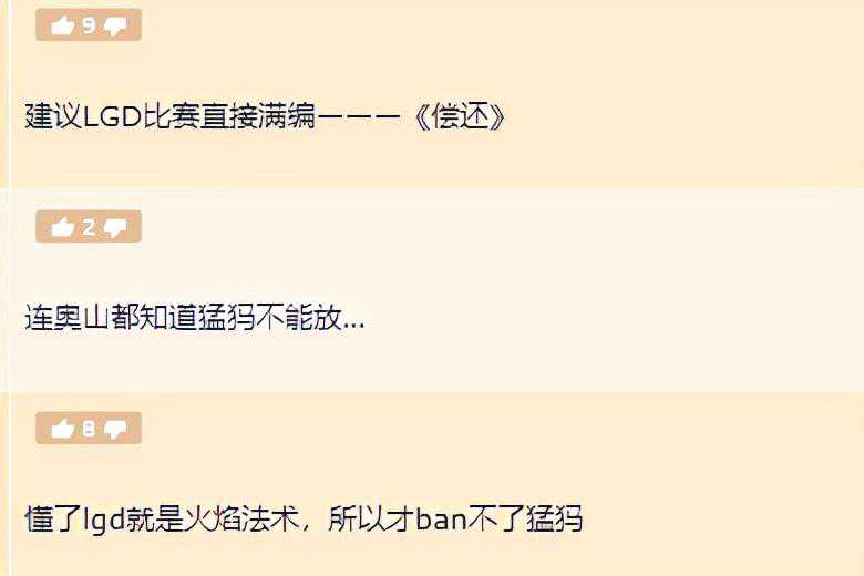 对于这张新卡带来的调侃,不少DOTA2玩家都表示被冒犯到了:“连奥山都知道Ban猛犸”,“建议LGD比赛直接满编”,“懂了lgd就是火焰法术,所以才ban不了猛犸”,“配的文字很讲究,为什么沦落至此,还不是因为ban猛犸”,“怪不得最后一把雪碧要选火猫”……