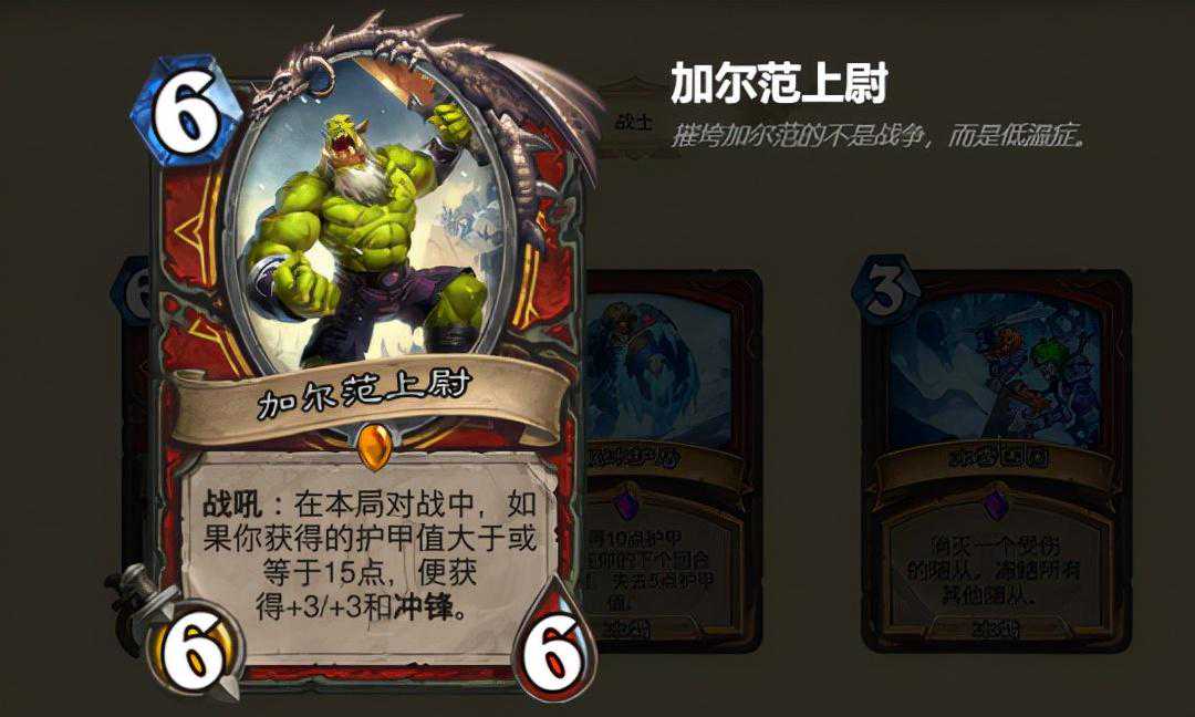 只不过,调侃归调侃,暴雪自己在这次拓展包的设计上,也充满了大量槽点,譬如说战士新橙卡6费9攻9血的暴龙王,又或是可成长为20费的英雄卡野性之心古夫,属实是超模到姥姥家了。