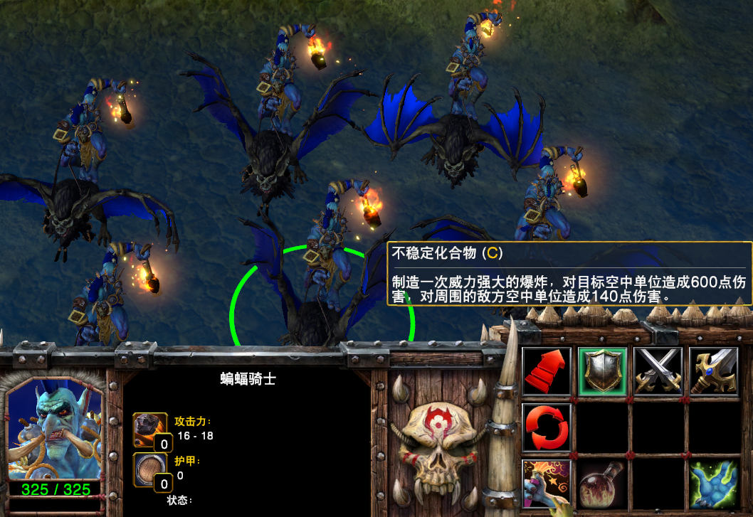 不能作为主战单位:虽然蝙蝠骑士的综合能力还算不错,但因为本身只拥有不高的攻城攻击力,在限制对手空中单位上更是需要以命换命的原因,实战中可以作用防守、侦察和牵制类单位使用,但绝对不能作为主战单位使用。
