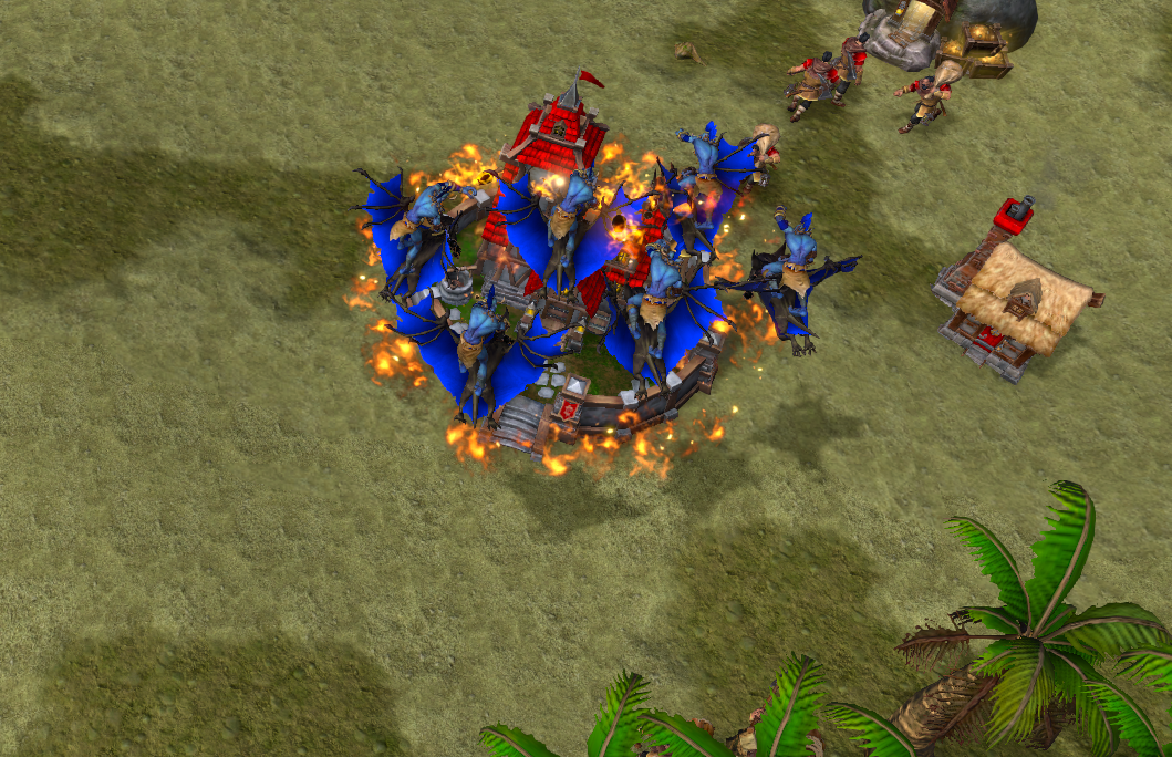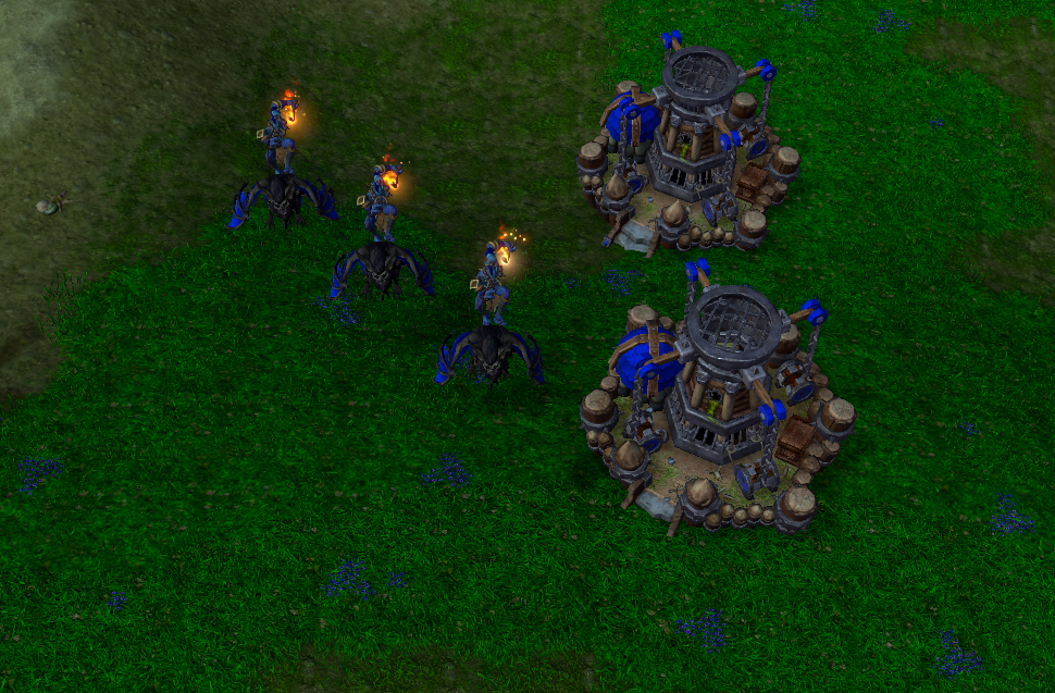 过去的版本中,兽族在与亡灵对抗时,不少玩家都会选择用研究好了火油瓶技能的蝙蝠骑士来骚扰和压制亡灵的分矿。究其原因,主要便是有了火油瓶技能后,攻击速度被大幅度降低的亡灵建筑并不能对蝙蝠骑士造成太多伤害;而点燃期间会持续掉血还无法修理的设定,又会让兽族拥有在短时间内将亡灵的闹鬼金矿压到降低血量甚至是直接摧毁,大幅度降低亡灵的经济发展速度。