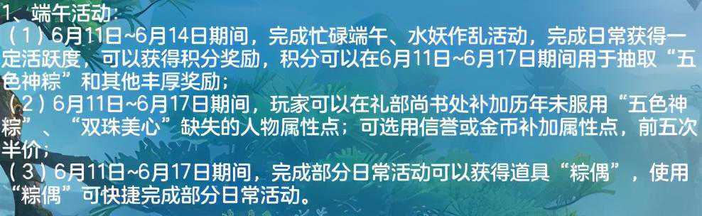 今年的端午节活动和往年基本相同还是老三样:组队打怪、单人任务、补加属性。