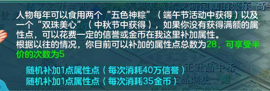 最后再来说说端午节重头戏补加属性。今年相比去年补加属性的费用也没有涨,前五次还是40W信誉or35金币后面就是正常的80W信誉or70金币。
