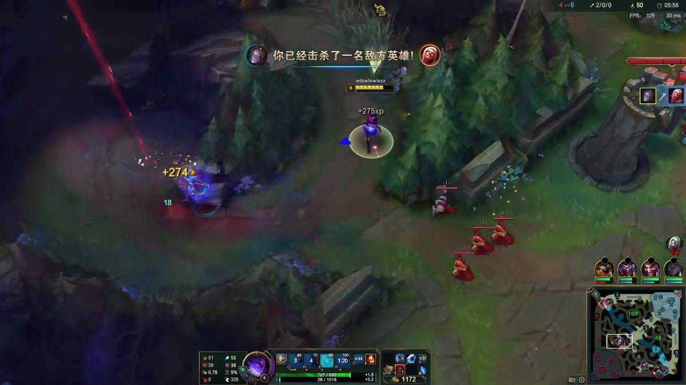 随后韦神一直保持着线上的距离,用球逼迫着吸血鬼的走位。抓住机会之后,一个QWA引燃直接套上,吸血鬼虽然攒上了红怒Q,但是却离兵线太远,只能眼睁睁地看着自己被引燃烧死。阿韦顺利斩获一血。