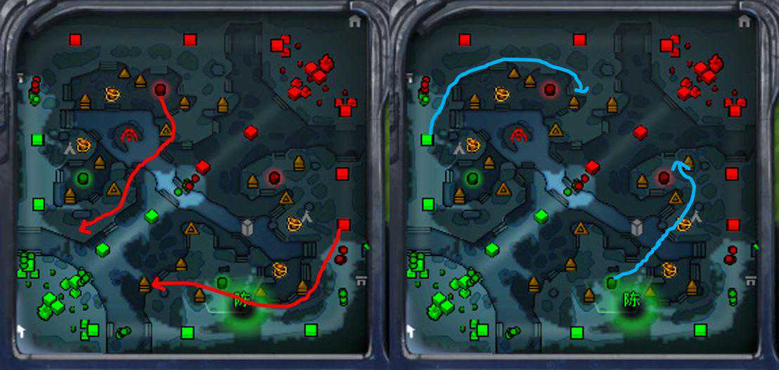 2、判断敌人分路,做偏向敌人gank路线一方的视野。例如,敌方4号位海民出现在上路,那么中路的视野也要做在中偏上河道符点,兼顾对线和防gank,反之亦然!
