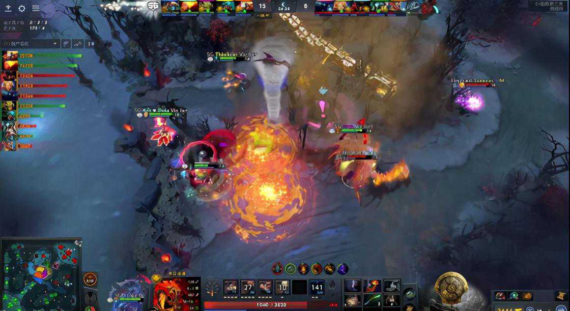 4分钟中路激情换命,影魔卡尔换命。5分钟SG影魔机警走位,拿下3个人头,然后反杀大牛,经济领先全场。7分钟小象动手影魔失败,9分钟再抓终于击杀影魔。SG反手制裁两次狼人。13分钟小小换命SG三人,卡尔秀起再杀影魔。SG开始抱团,正合狼人心意,开始带线。18分钟,SG慌乱中技能乱放,惨遭3人团灭。223分钟SG开雾入侵野区,先后击杀狼人和卡尔。26分钟对开雾,小象奋力击杀伐木机,SG撤退不及被打五人团灭。小象带盾推高,SG毫无还手之力,再次被团灭,只得打出GG。