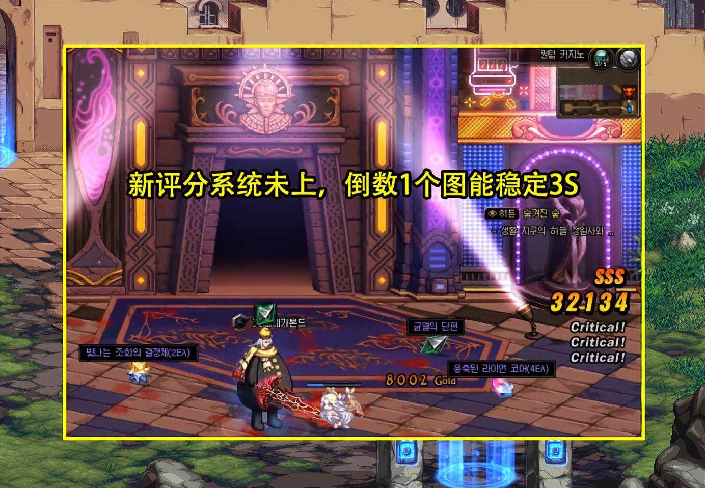 这个系统有什么用呢?说白了就是默认3S!在韩服的新搬砖本中,在倒数第二个房间评分就满了,哪怕是伤害爆炸,每个图都秒秒秒,只要过一个图,他至少会提高1个评分,到BOSS前一图正好是3S。