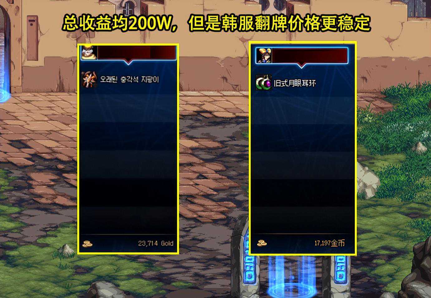 别看韩服翻牌收益比咱们国服高,但其实总收益和国服一样都是200万左右,但是韩服由于新增了评分系统,搬得更效率,而且3S也更轻松一些,不像国服由于没有新评分系统加入,伤害又太高,评分不好打到3S,收益也不稳定。