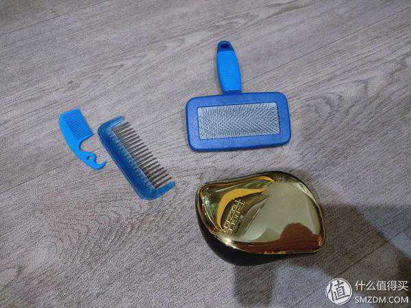 最后是梳毛毛的用具,针梳必不可少,狗子身上要是有草籽就要靠它梳下来,最左边的小梳子是用来清理针梳,也可以用来梳卡卡西脸上的小胡子,下方的tangleteezer是我淘汰下来舍不得丢,给它梳毛用。