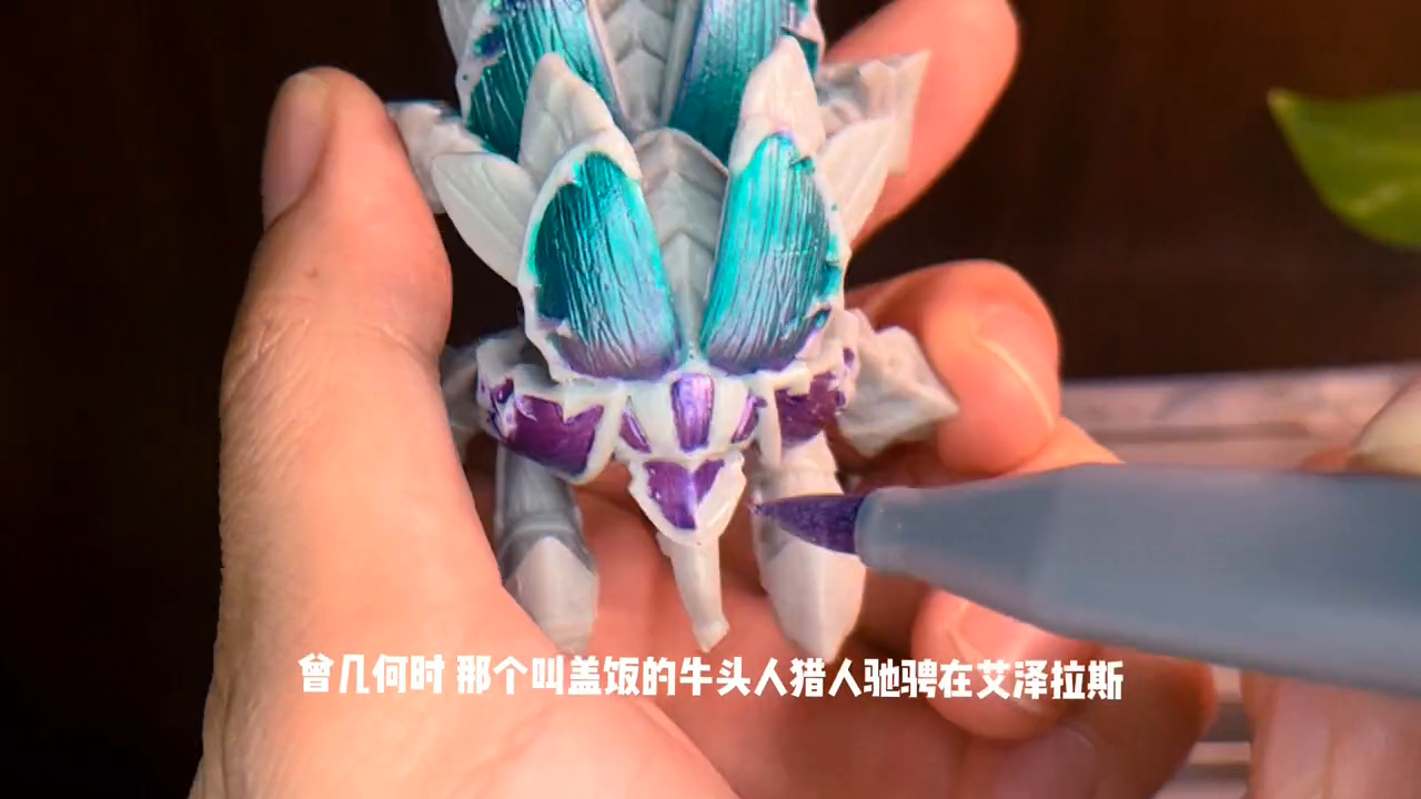 ·魔兽世界里面的经典英雄,这次涂装尝试使用丙烯马克笔来上色,背部甲壳使用金属绿和紫过渡,发色效果觉得很不错,当然有些细小的地方涂不到还需要面向笔来搞定。