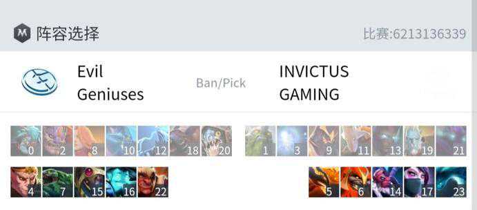 从选人来看,IG拿到了经典玛尔斯凤凰团战大招体系,优势路猛犸和冰龙的组合让IG拥有了多个无视魔免的团战控制技能。这对于EG拍拍狼人大圣三人来说无疑是非常地克制。而EG拿到拍拍狼人的阵容只能期望在中期能够击溃IG,后期团战胜率堪忧。开局EG直接选择优势路刚三想要把IG中期的节奏点玛尔斯直接按死,但凤凰出其不意也支援而来反而是帮助劣势路二人击杀bane拿下一血。不过对线期EG的大圣狼人二人控图打信息能力极强,特别是大圣在前期斩获几个人头之后直接选择出紫苑转大哥,不过这样的出装选择在IG提升防守之后并未给到大圣扩大优势的机会。