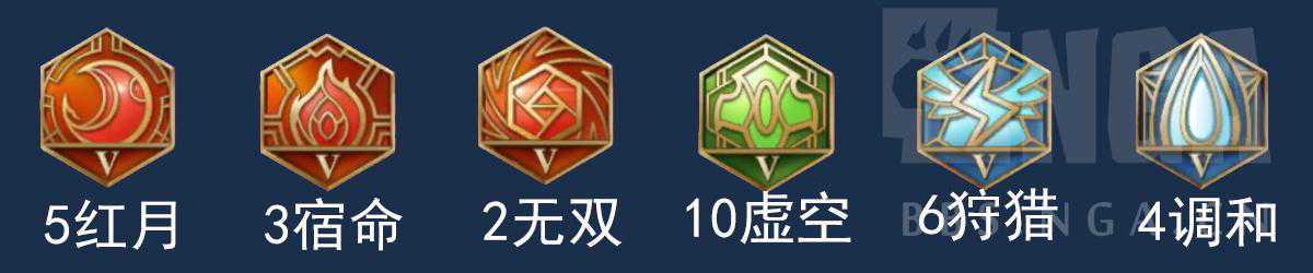 铭文:红月*5宿命*3无双*2虚空*10狩猎*6调和*4