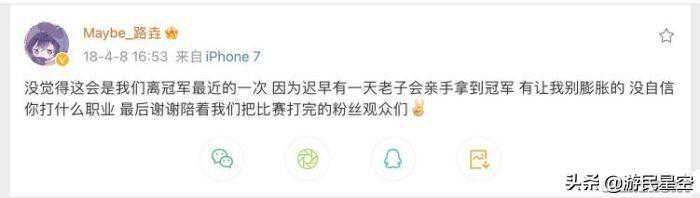 赛后,xinQ在微博发文,大意是:对我们威胁最大的不是猛犸,而是对方的三号位,即使BAN了猛犸,他们依旧有其他强势的英雄代替。