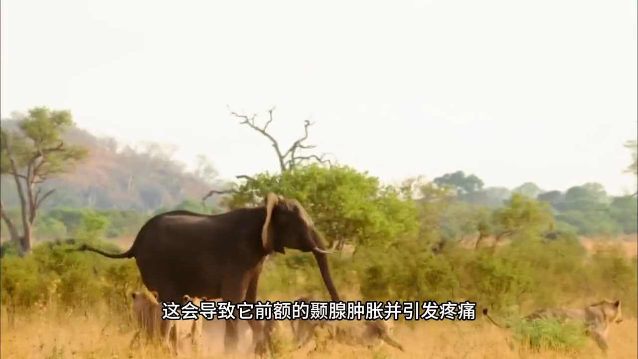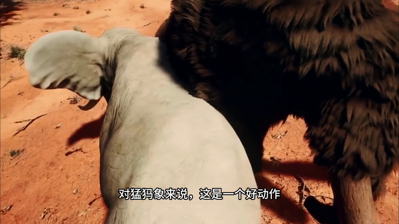 大象在距离猛犸象很近的地方停下来,它的冲锋只是一个虚张声势,长毛猛犸象愤怒极了,它开始挥动獠牙和鼻子准备向对手发起冲锋,就像它那粗糙皮肤的对手一样,猛犸象的颞腺肿胀也导致疼痛,让它处于极度紧张的状态,肿胀使它无法正常思考。