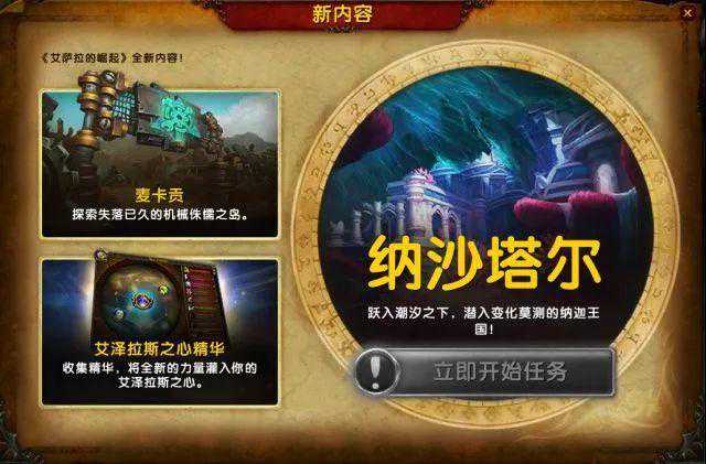 8.2开场会接到任务两边在海上会战,然后一起跌至纳沙塔尔,之后被娜迦袭击。之后双方会遇到新地图的盟友,部落盟友破镣者,联盟盟友剑鱼人。