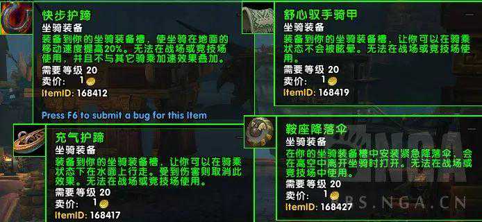目前有4种坐骑装备:快步护蹄,舒心驭手骑甲,充气护蹄,鞍座降落伞