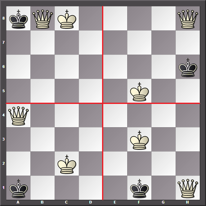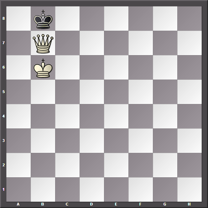 下面会列举一些经常遇到的单后杀王的标准局面,后在有保护的情况下,可以把相邻格子的王将杀,白王如果控制黑王的位置,那么后远离黑王也可以将杀。