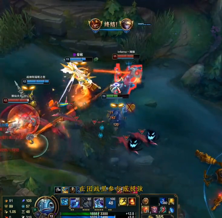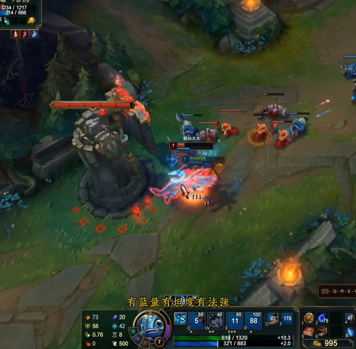 ·我们都这个段位了,还在乎那点胜点吗?我们要的就是一直战斗,一直爽干就得了。福尔我带的是不灭爆破双人性凯旋,对线AP就点冷却双魔抗,对线ad就点冷却双护甲。集下三杀之后靠着爆破还能推塔。我要玩的就是全能型鱼人。游戏到中期,大宝剑追上我一套QE,我想给他自己打,迷茫了怎么就没掉多少血呢?